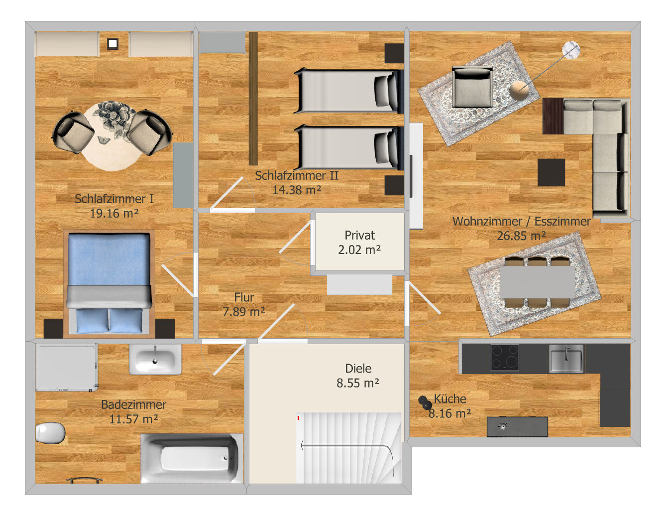 Die Wohnung ist für sich abgeschlossen und hat über das Treppenhaus einen separaten Zugang.
